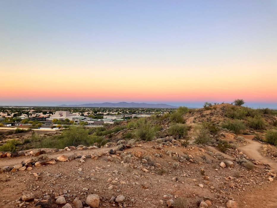 Just getting on the Chuckwalla as the sun starts to color the White Tank Mountains