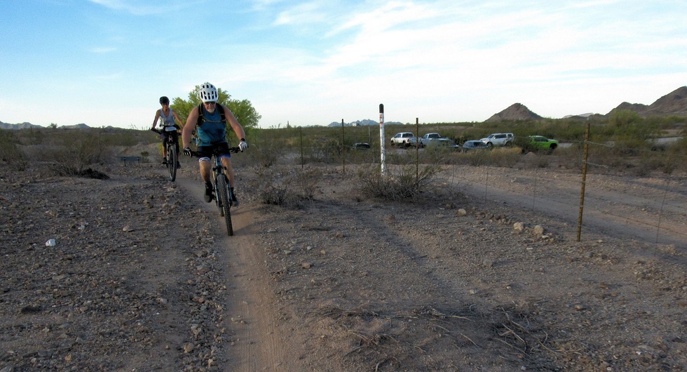 Parking off the east side of SR85 south of the Gila River at the entrance of Holcim Buckeye Plant stone quarry. You can also park on Narramore and enter the northern part of the trail system.