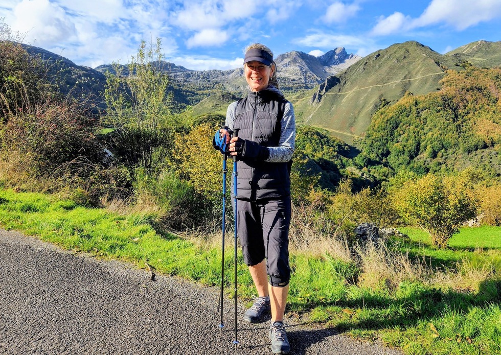 Behind Wendy to the right is **Karst Landscape:** The pale, "Swiss cheese" appearance of the rocks on the peaks is classic limestone karst. Over millions of years, rainwater has dissolved the stone to create the caves and sharp ridges typical of this [UNESCO Biosphere Reserve](https://wildsideholidays.co.uk/somiedo-natural-park/).