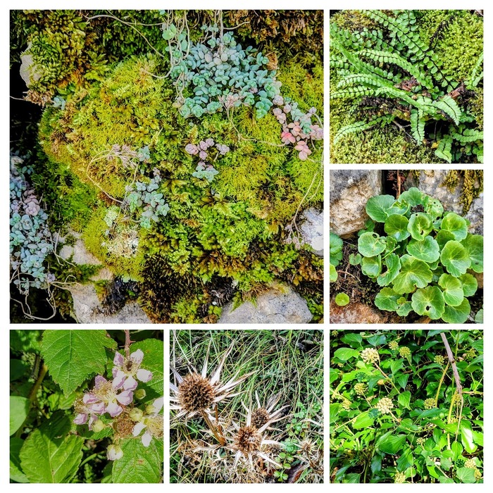 Middle Right - Wall Pennywort (also known as Navelwort or Umbilicus rupestris). n Asturias, this plant is traditionally known for its healing properties. The fleshy leaves were often peeled and applied to the skin to treat minor burns, scratches, or even to help remove splinters, acting much like a local version of Aloe Vera.