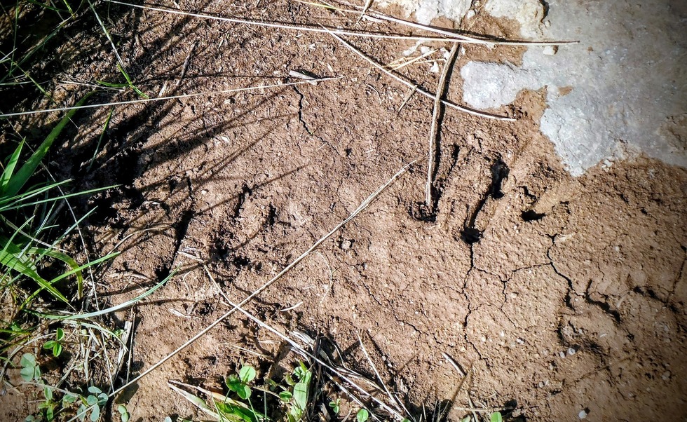 We saw several tracks on the muddy sections of the trail. These are from These are the tracks of a **Wild Boar** (*Jabalí*).