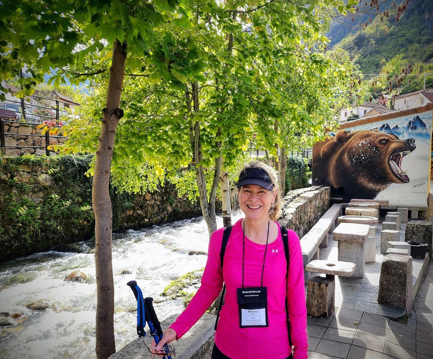 Cousin Wendy found the bear amusing as she stood next to the Somiedo River.