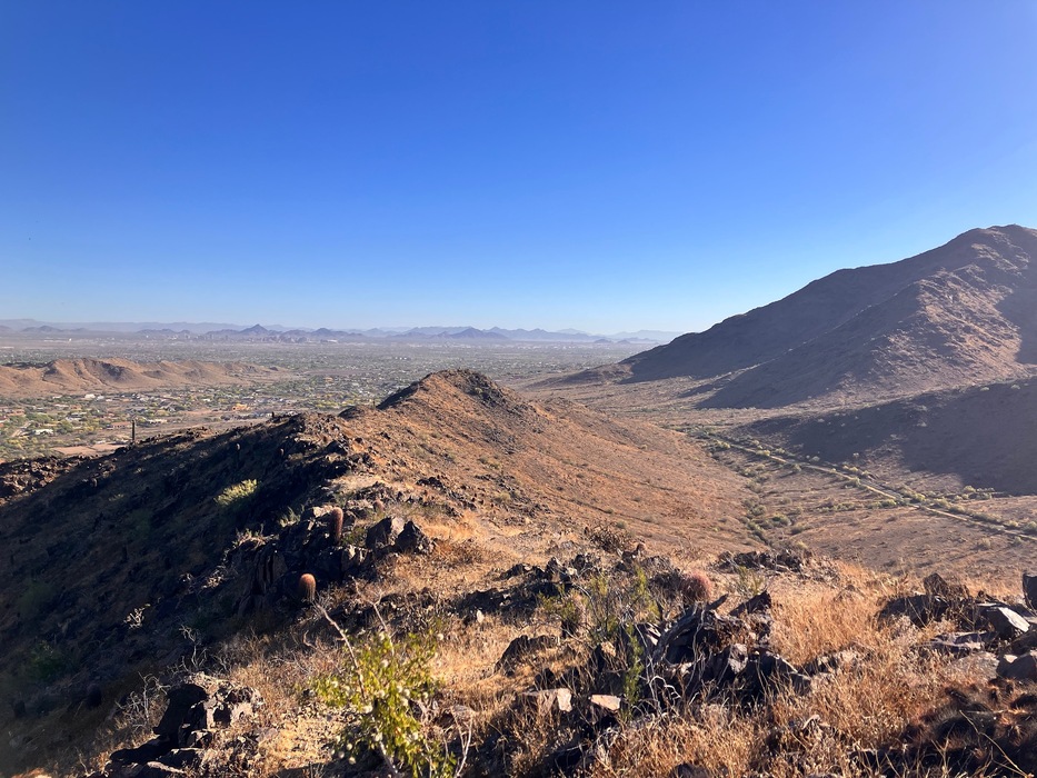 From the second peak looking back at the foothills. Phoenix in the distance. San Juan Dr. is to your right.