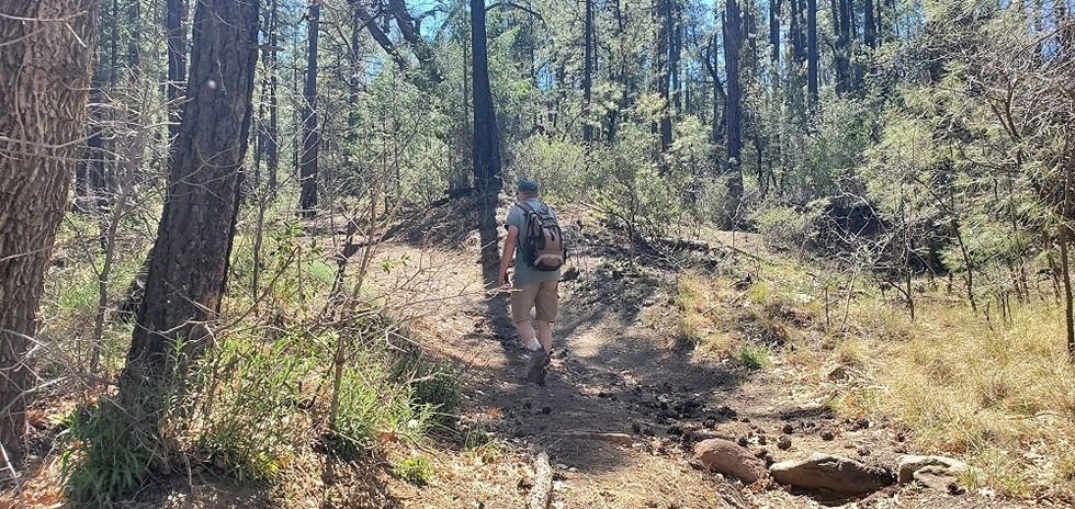 starting off on the steep trail. Brian is up ahead.