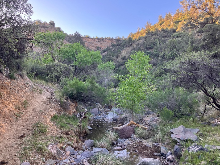 The trail crosses this stream and still has about .3 miles to go before intersecting with the Camp Verde Trail.