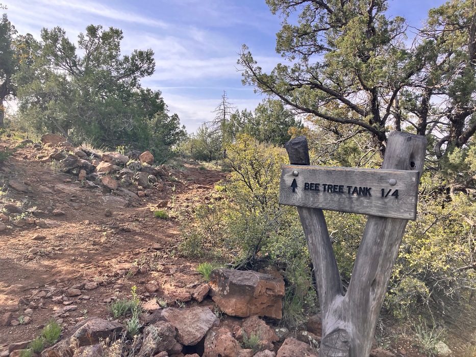A signed road crossing was telling us that “Bee Tree Tank” was just up the road