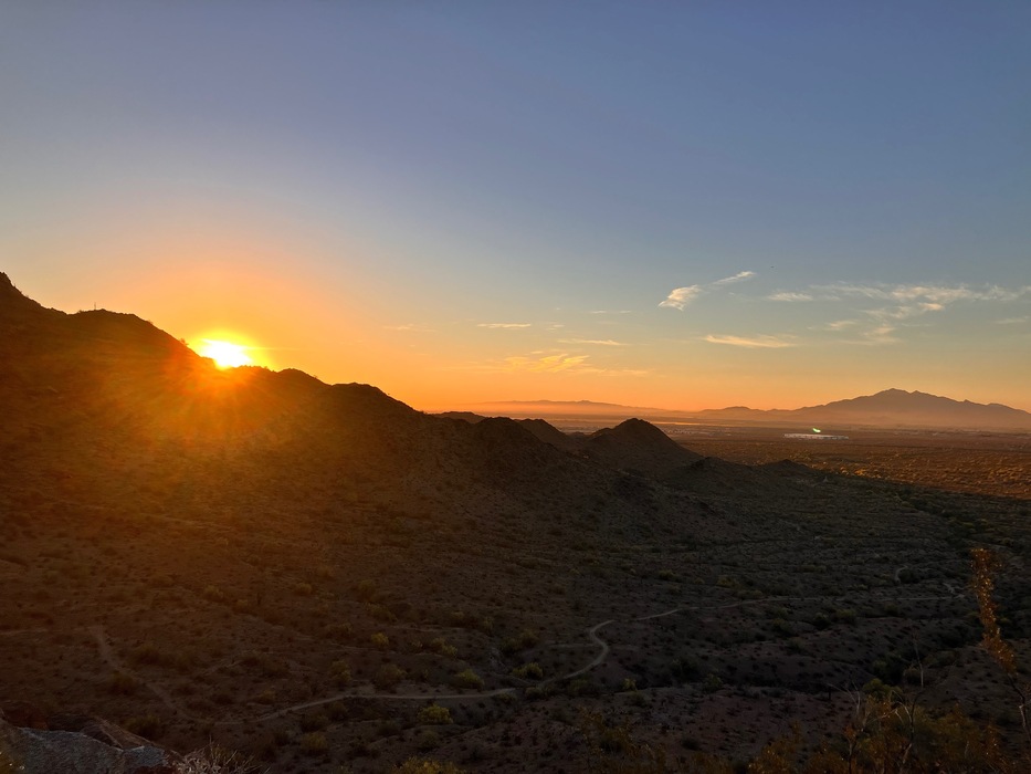 Sunrise from Watson Overlook. Looking down on the Quartz Trail