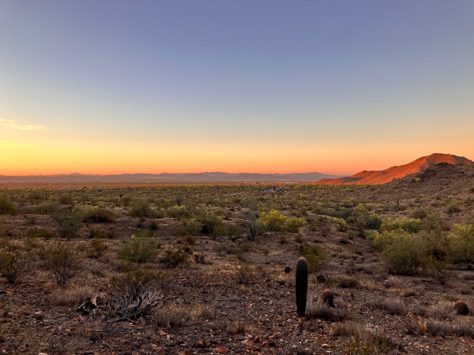 Just starting in on the Quartz Trail part of the loop. Sunlight dusting the nearby hills