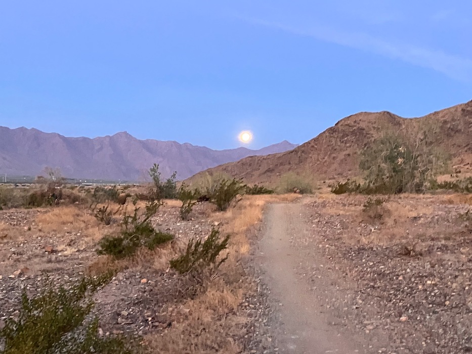 Just starting Lost Ranch Ruins Trail. Catching moon set and Artemis II just to the left……you have to squint really hard to see Artemis. Lol