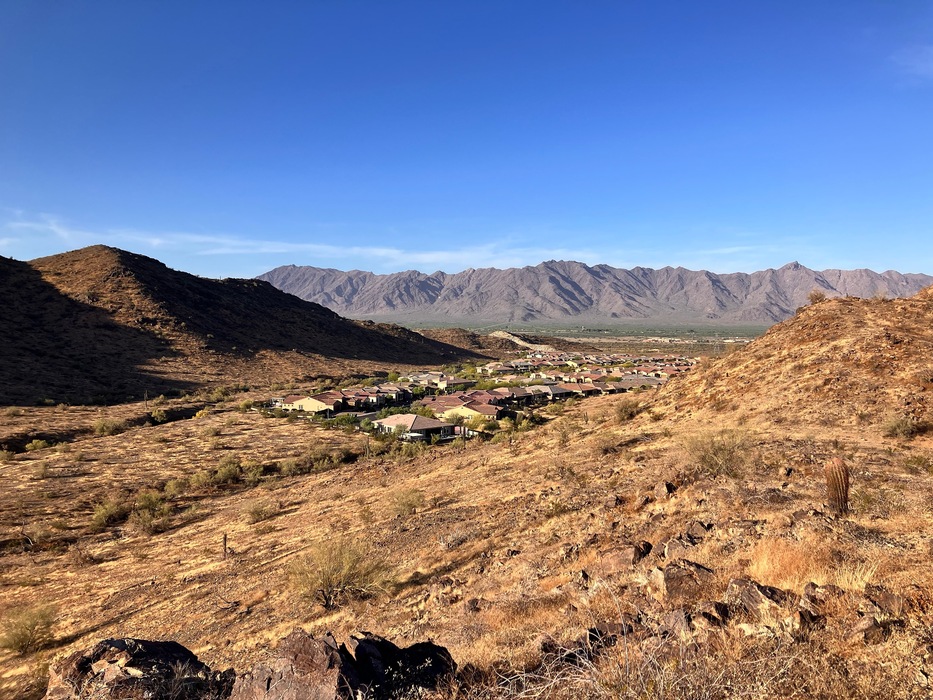 As the Gila Trail turns east it passes this new, nestled community. There are a couple of use trail that connect from these homes to the Gila