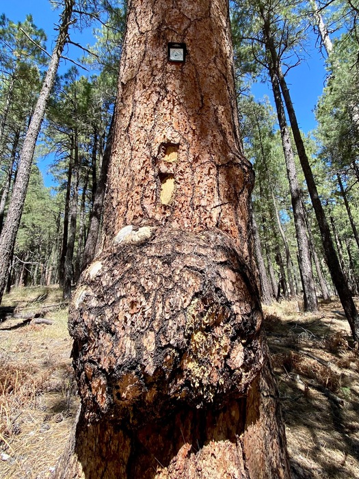 A burl, a blaze, and a trail marker. Curiously, the cabin loop markers disappear when the trail is concurrently shared with the AZT.