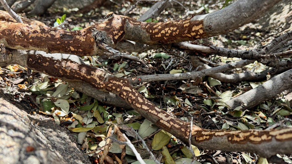 Interesting damage to the summit shrubbery. Do the lady beetles do this? Another insect? Rodent?