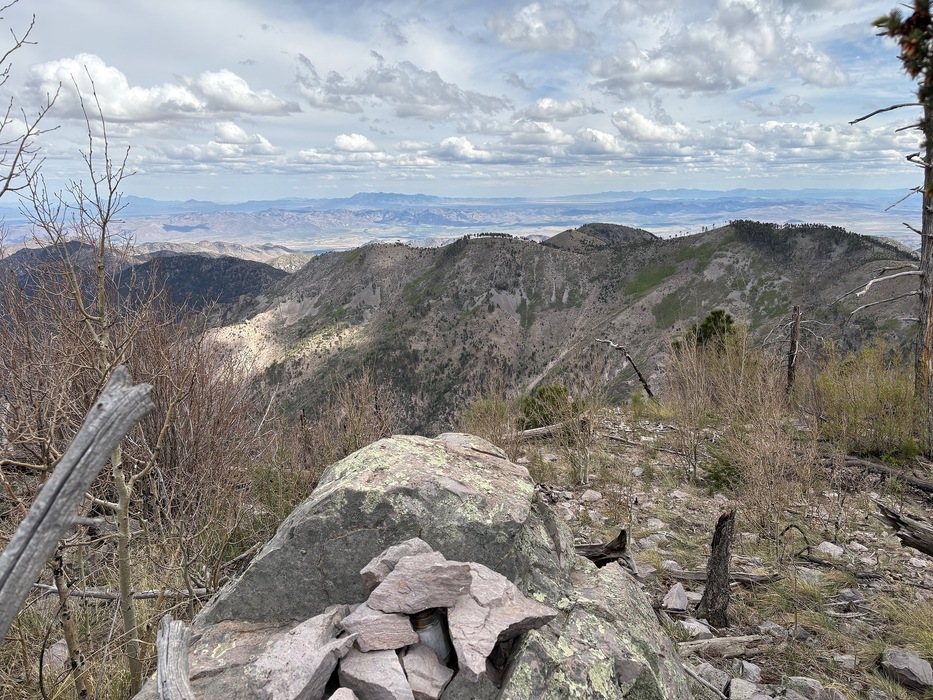 Snowshed Peak. The peak log is full, though infrequently signed.