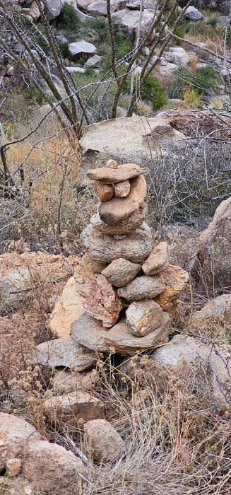 The cairn marking the route from Pima Canyon to Table Mountain