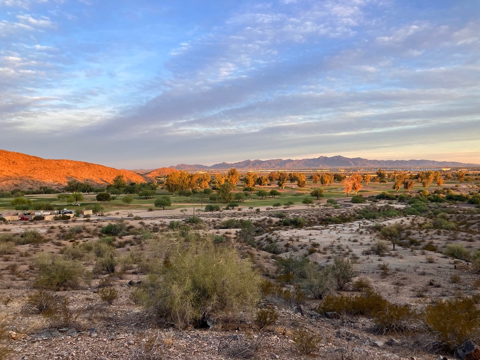 Just past the juncture for the Saddle Trail. View of the nearby golf course and White Tanks in the distance