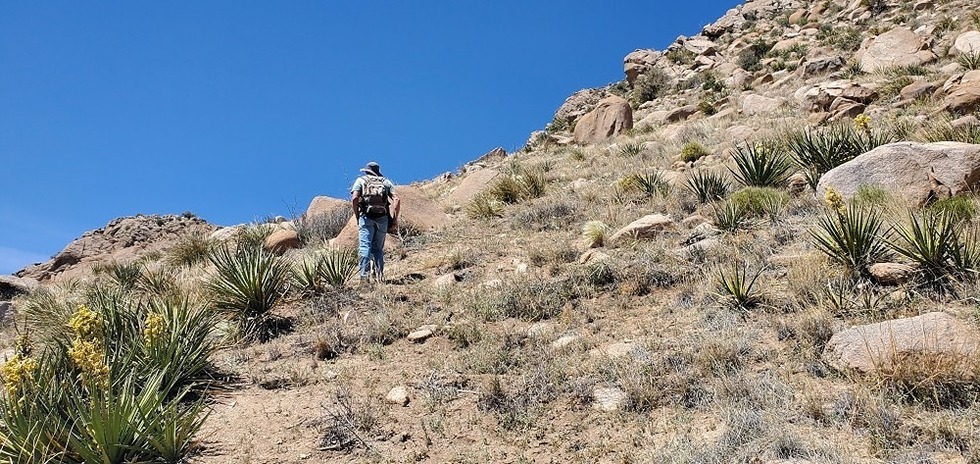 heading to a low saddle. some banana yucca on the left.