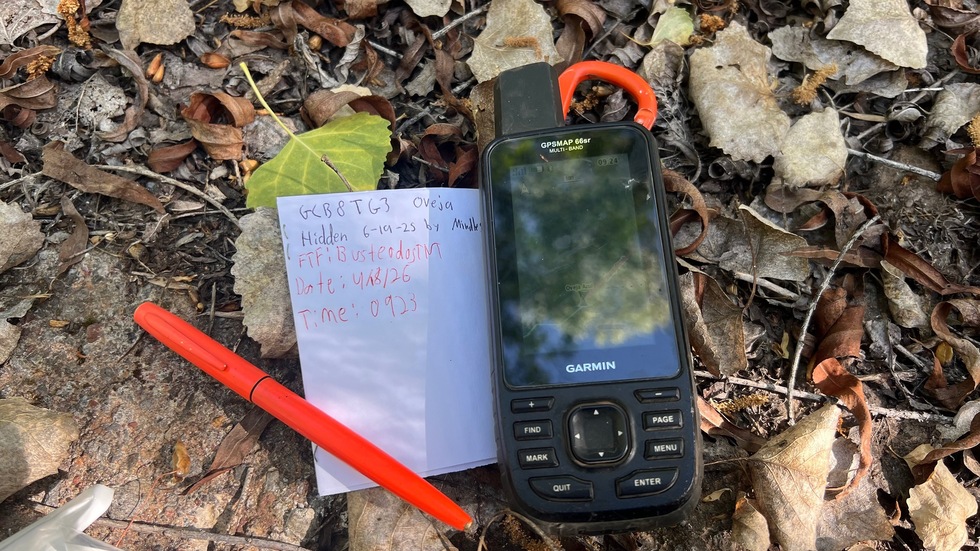 Woohoo, geocaching FTF near Fig Cabin