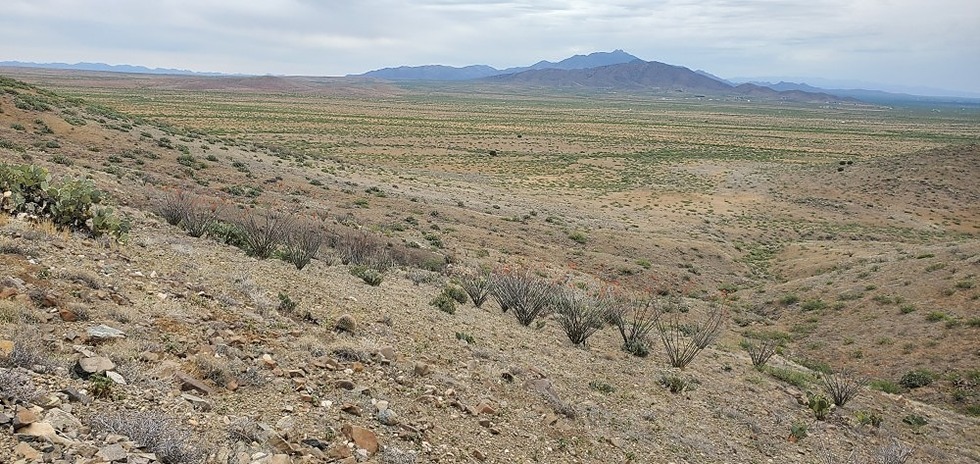 Looking down at a lot of flowering ocotillo.