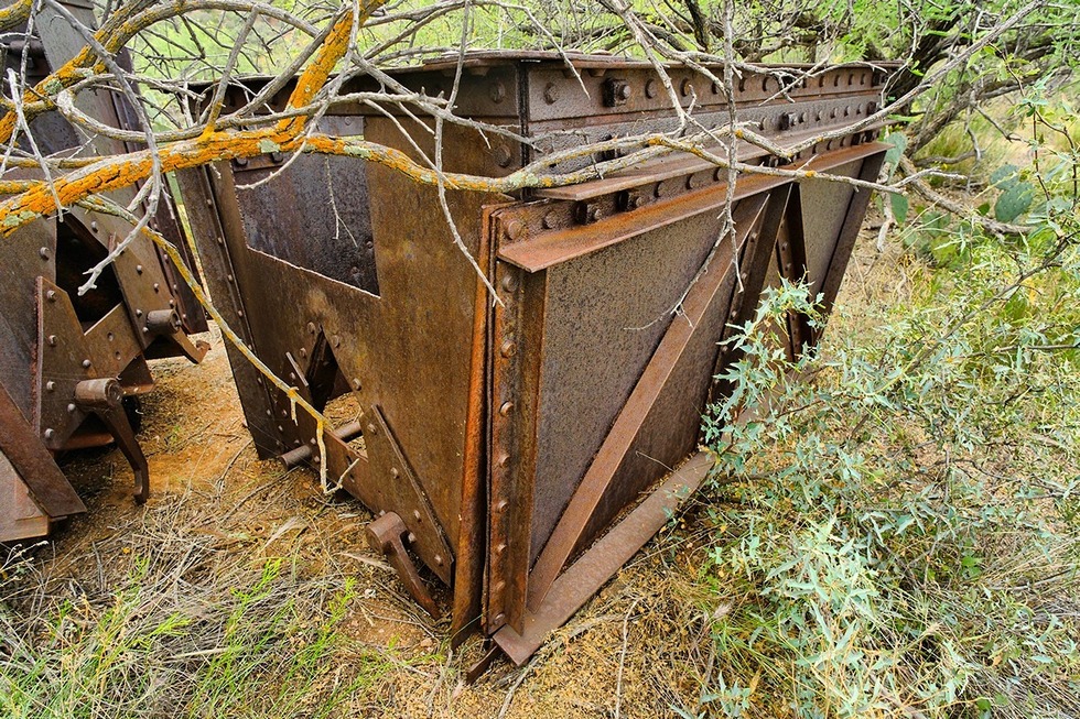 Large ore carts; they seemed to be the style that opens and dumps from the side.