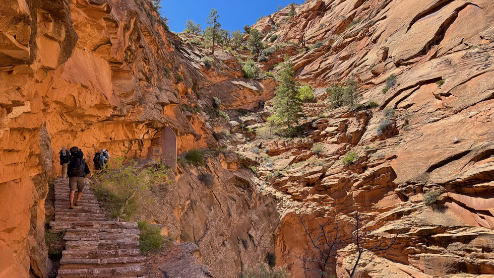 Steps and more steps. 927 of them. Switchbacks of steps. All the way up. No railings.