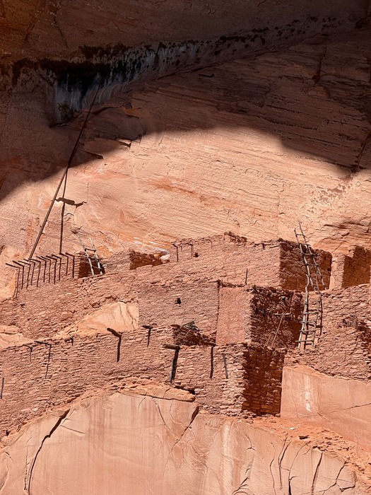 My favorite part was the large tree trunk in the upper left. This was their ladder to the upper portion of the dwelling. Climbing it has to be a thrill. Once at the top there is a catwalk that allows access to a room out of sight to the right