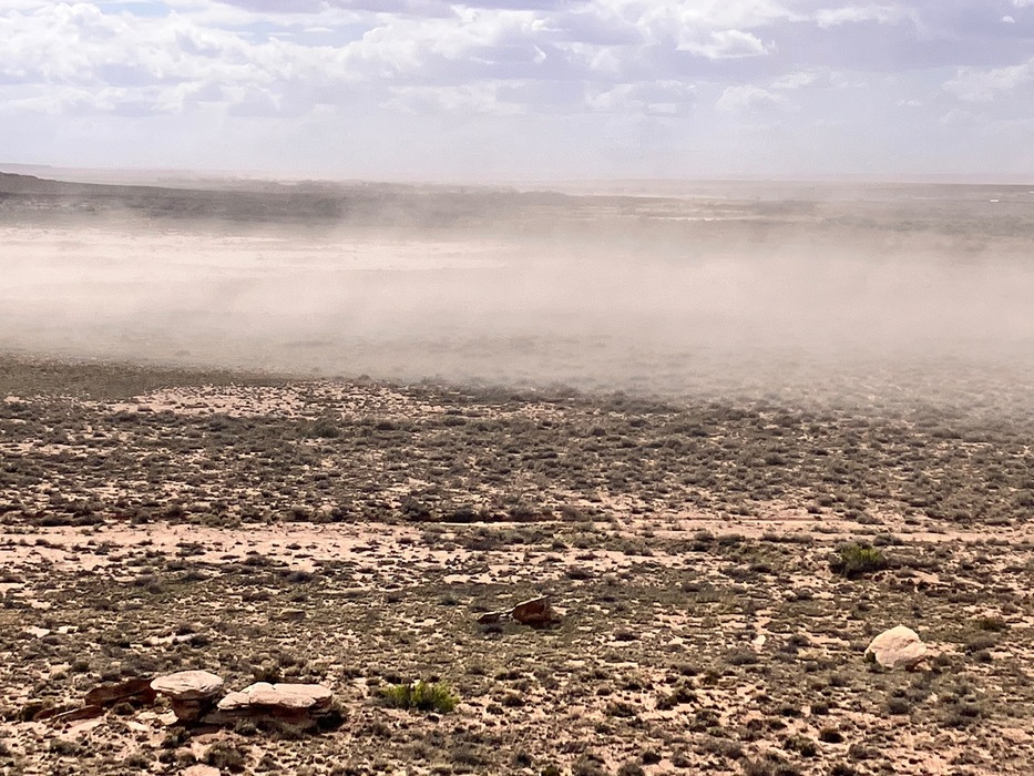 Very chilly, windy day. The dust was kicking up just beyond Newspaper Rock.