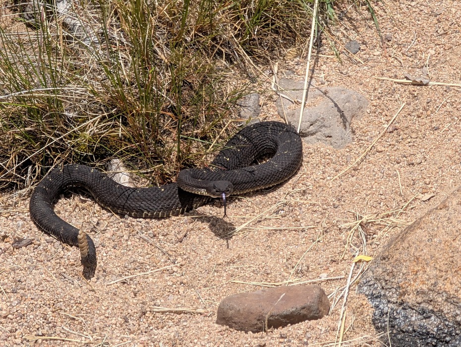 The Trail Guardian, was stretched across the trail, but backed up to take this defensive pose. He kept the trail, as we gave a safe berth.