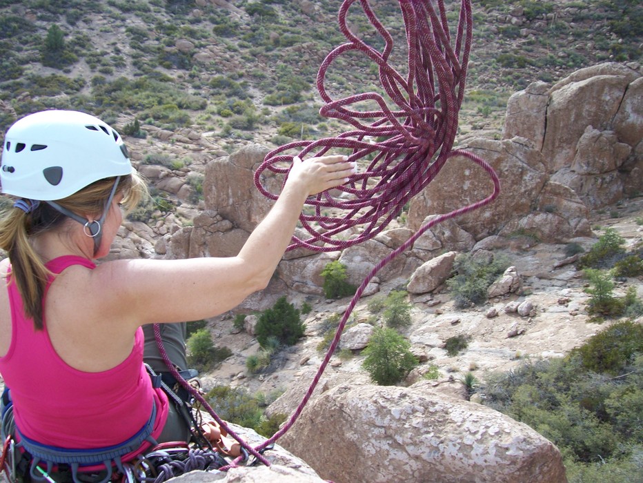 Ahh, the rope throw! Setting up to rap down.