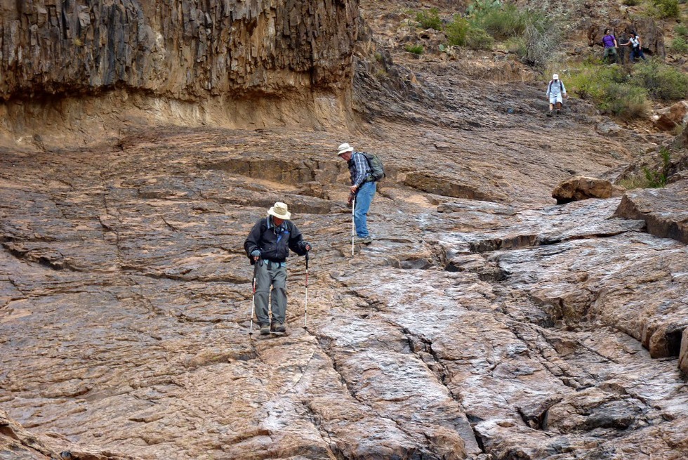2:54 pm - the rain was letting up just a little but the Draw was still slick as John and Randy gingerly try to come down the Draw in an upright position.