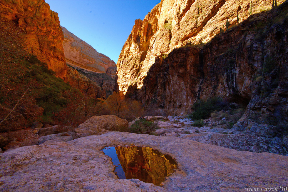 This would have been a great spot to wait for a sunset. This is on top of one of the huge boulders. The one canyon wall on the top right is probably over exposed, but I actually like the way it looks. It looks like a golden wall.