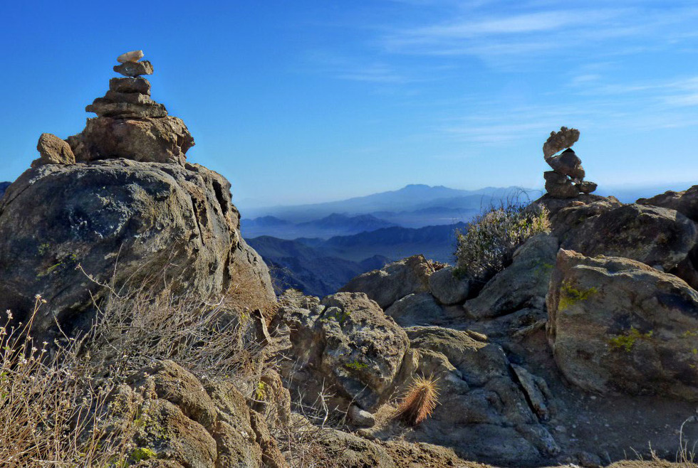 This ridgeline is overly cairned but this seemed pretty obvious. Nice view looking SSE toward some other mtn ranges.