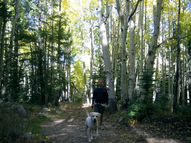 My dog and I hike back down the trail. As always, he enjoys the hike as much as me!