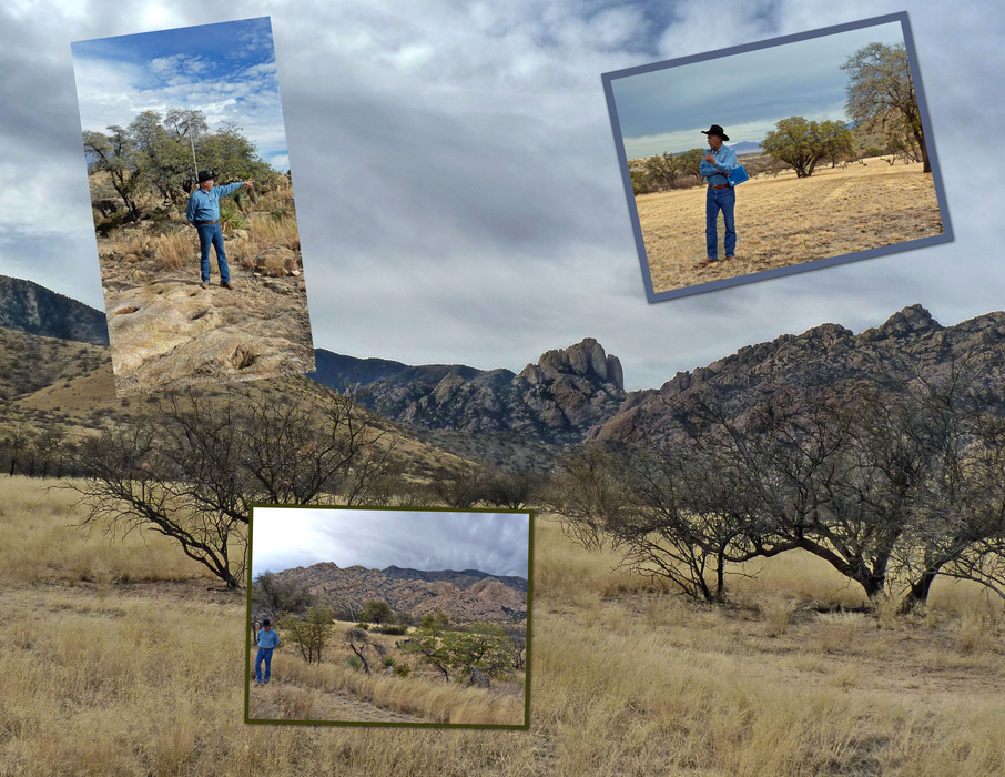 This is a collage of Doug on his land. He was so passionate and so proud. He thot he was buying a ranch he could work but it turns out, the place is so special they have taken off all the livestock and such. That is Rockfellow Dome in the center. Oh, and in the upper photo, Doug is standing near many holes in that rock that were used as metates.