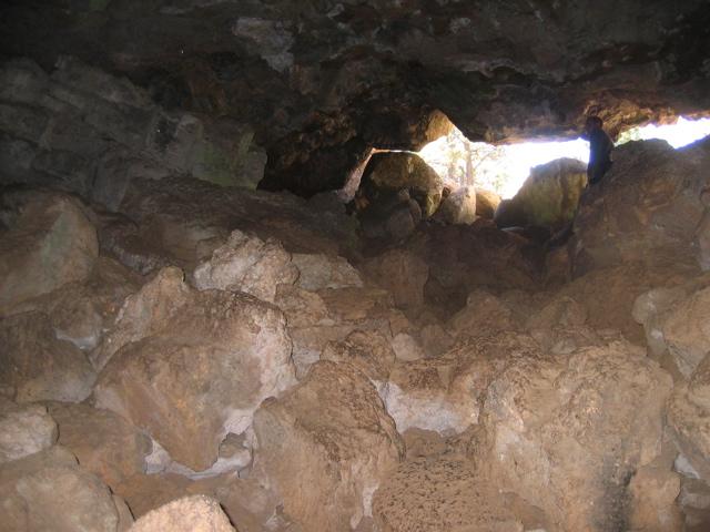 The cave entrance a collapse of the cave roof, so there's lots of boulders on a steep descent.