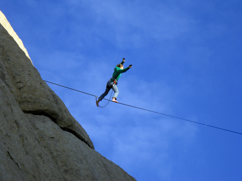 Driving by I saw what looked like a rope between two huge boulder formations. It was 2" webbing spanning over 100' and around 300' off the ground.