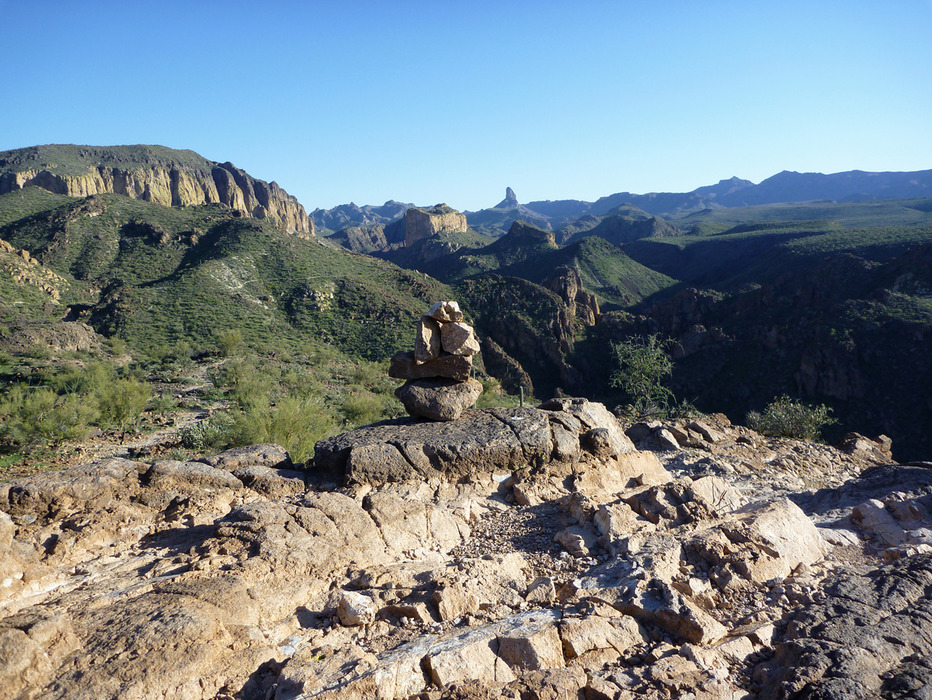 Obligatory view point photo - the cairn is my creation. You can't tell from the picture, but it's easy to walk right past the trail. There was another cairn off to the right, leading you down a steep slope to nowhere, so we got rid of that one.