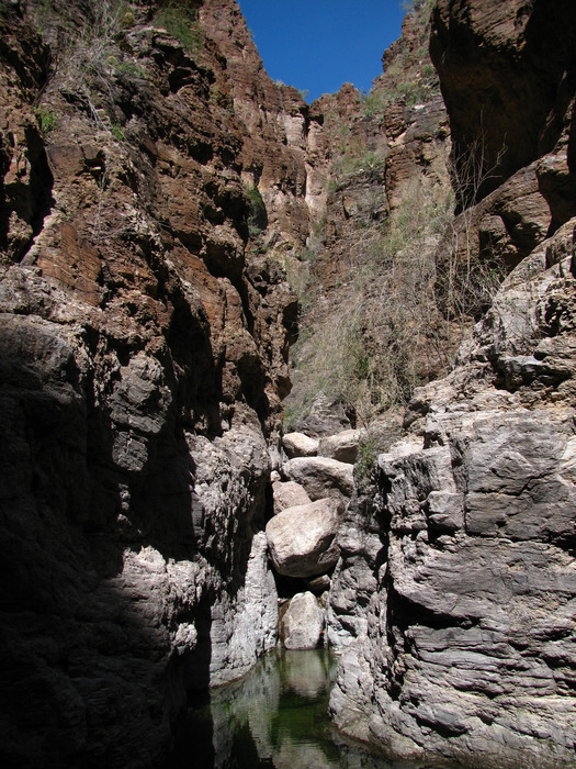 Same location as photo #4 looking up canyon. Water was very deep near the edge of the boulder jam.