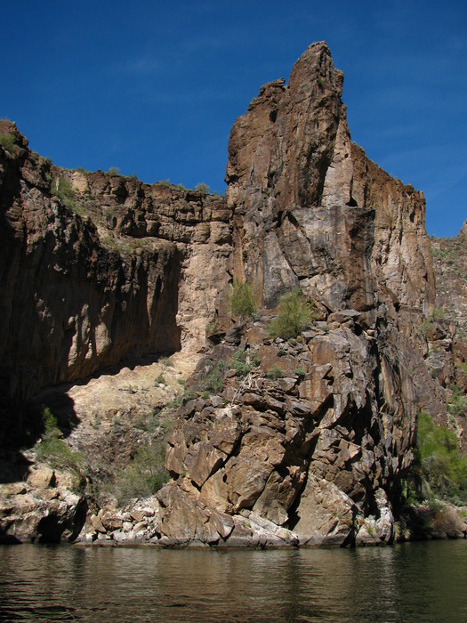 Rock tower at the mouth of Blue Tank Canyon. Blue Tank goes around the left of the butte.