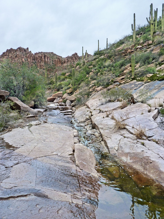 Water coming from all directions into this pool to the right. This is looking up the canyon.