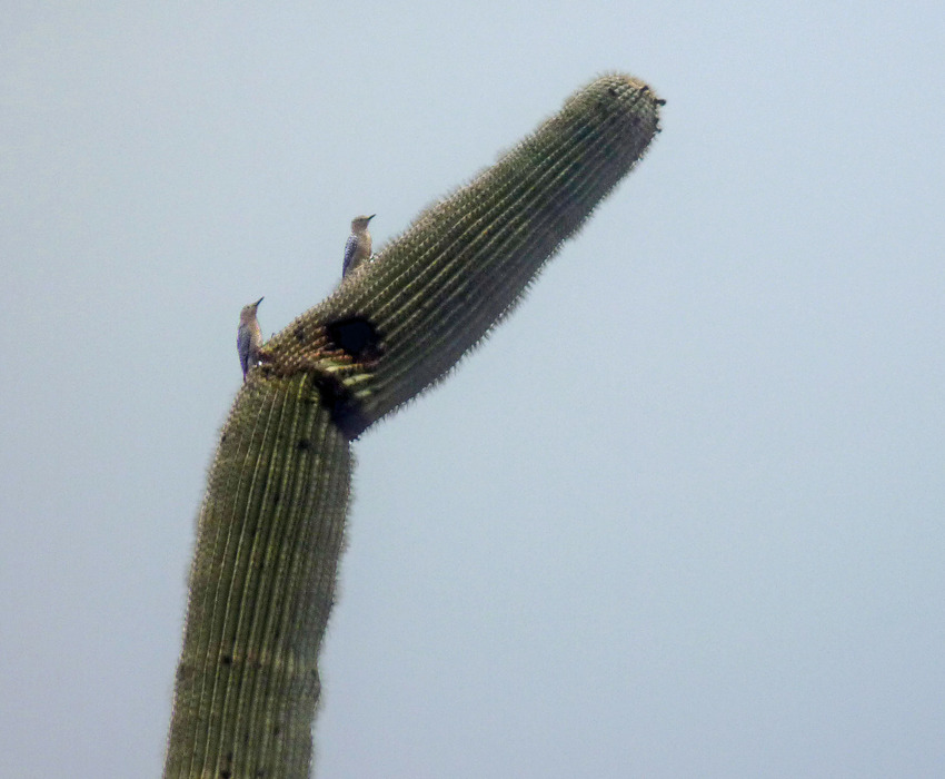 A couple cactus wrens on a bent saguaro. Here we have made it all the way down the canyon. I wasn't able to take hardly any pics on the way down as the rain was coming down and I was concentraing on getting to the flat area safely.
