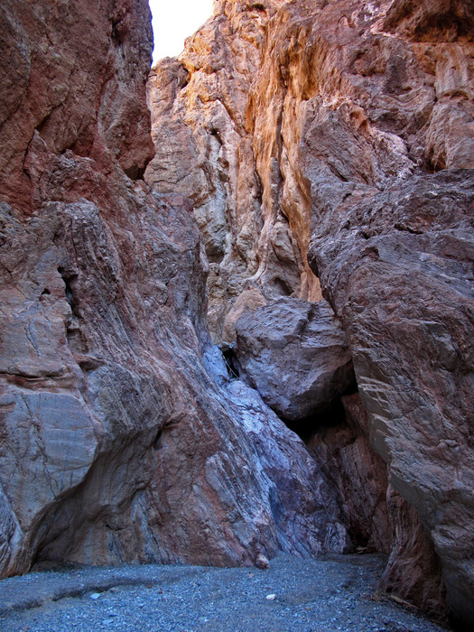 1st major hike "gatekeeper" (for the stunning narrows that lie beyond): a 25' dry waterfall in three climb sections: up a 10' polished chute to a small recess area under a chock-stone; 8' up/around the slippery chock-stone to a wide ledge; finally 7' climb over a boulder jam;