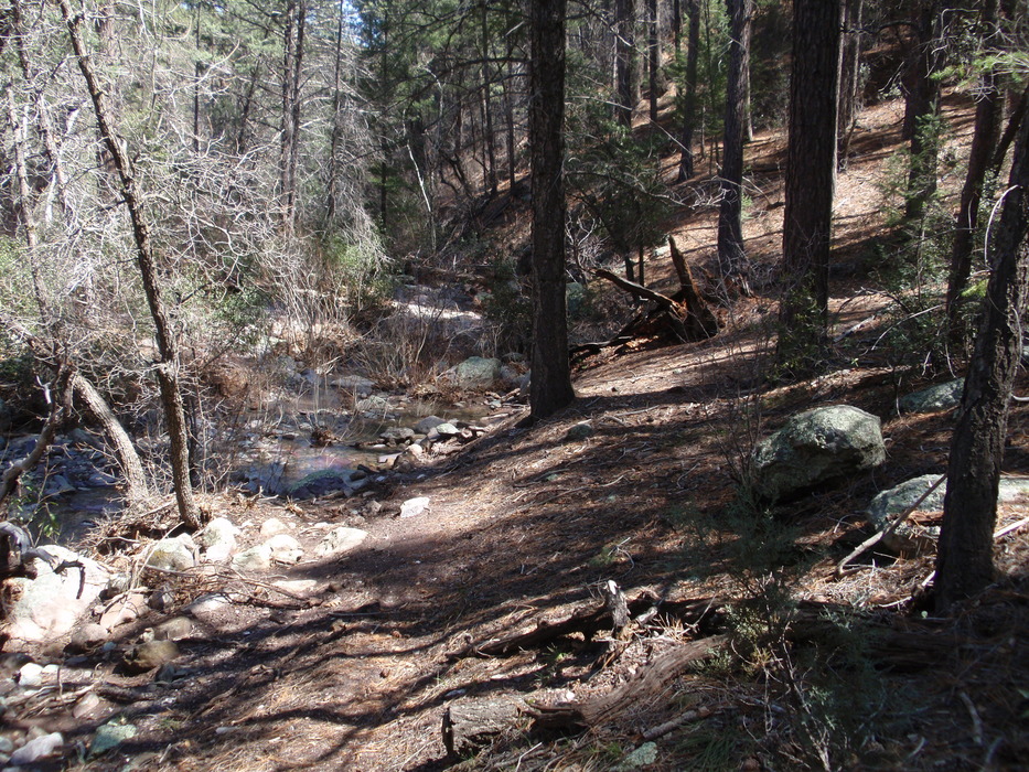 Another short of trail and stream nearing junction with Thicket Spring trail