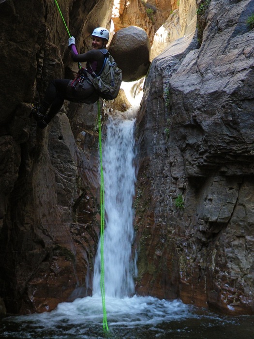 We bypassed the chockstone and rapped from the side