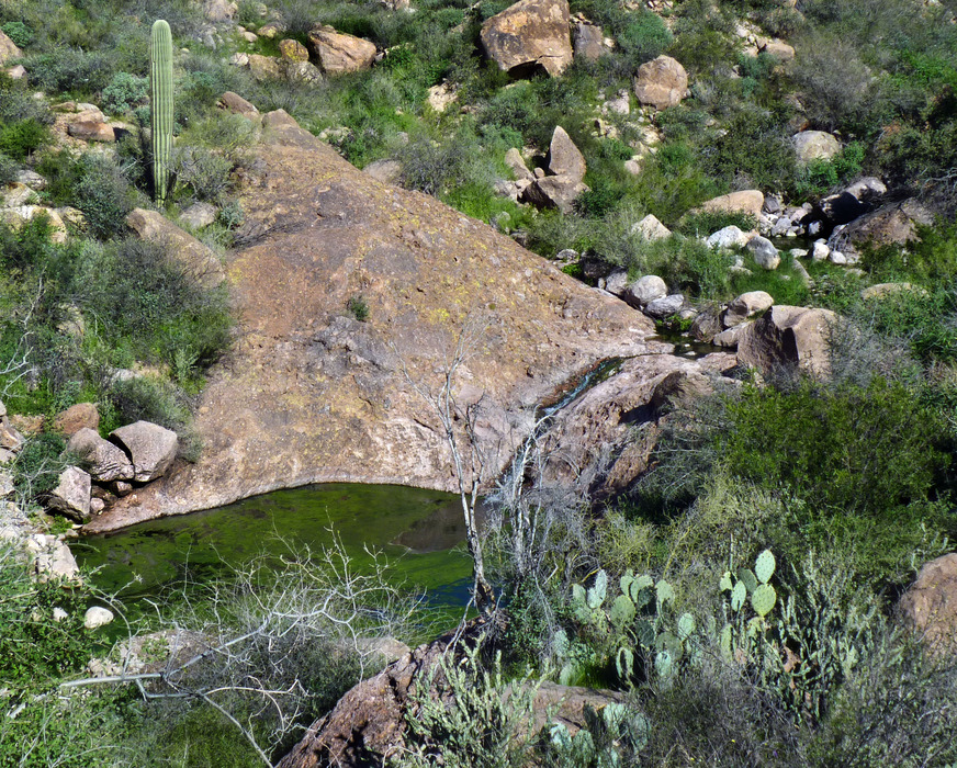 there was a lot of water in this pool and still a good flow into it. The algae is getting thick but it is pretty.