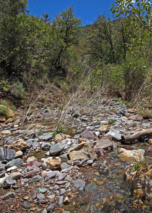 ~ .15 mile up FR25A from the 25A/3721 intersection is the not obvious creek crossing off FR25A (way point N33.967602 W111. 481876) to hike the short distance on the faint user trail up to the site of the old Cornucopia Mercury Mine adit (now collapsed);