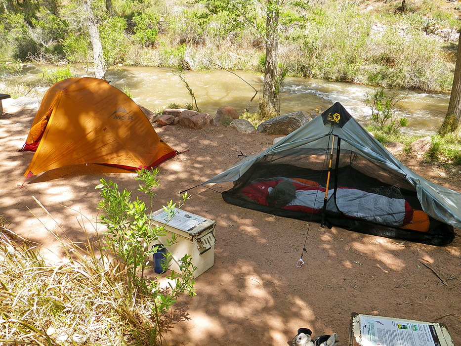 Six Moon Designs Lunar Solo on the right. MSR Hubba on the left.