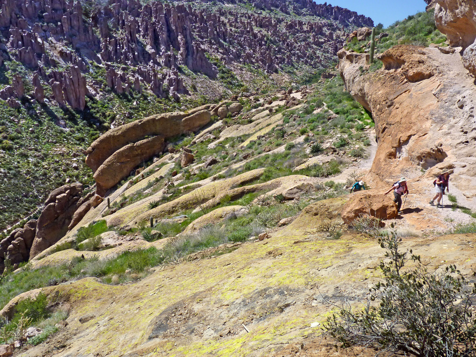 Looking N west at the trail. Some of the hikers (Cindy, Patti, Judy?) making their way up toward the Caves.