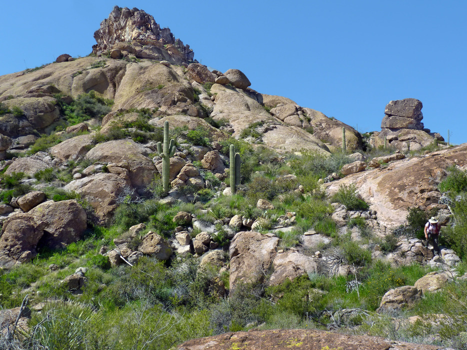 Looking back and up at the fortress and at the area we just came down so gingerly.
