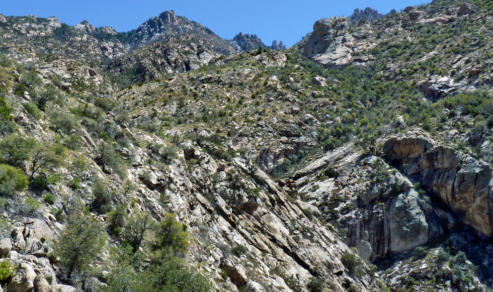 Zooming into the craggy mountain top and ridgelines as we continue to gain some in elevation.