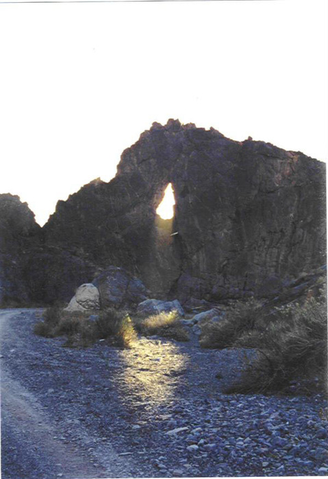 "Eye of the Needle" at sunset (reference pic#3 caption notes); Pic from Nov-1999 visit;